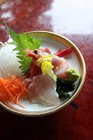 【お造り】南鮪(トロ)・白身(鯛)・ホタテ貝・甘海老・妻一式