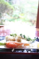 【焼物】鰆・蕗味噌焼き・茄子のオリーブ漬け・蓮田楽・だし巻玉子・エシャレット