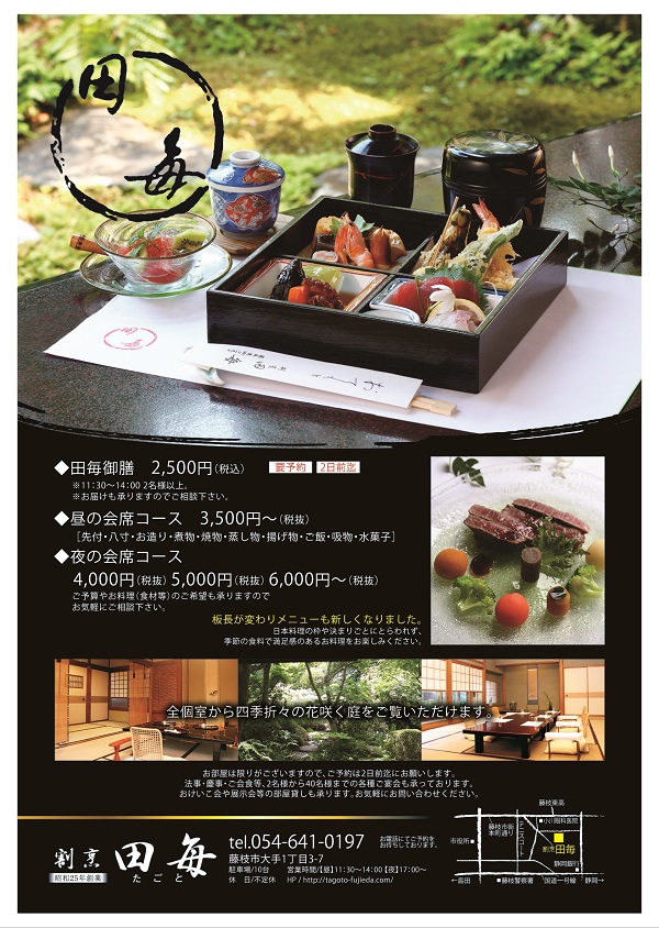 「田毎御膳」お届けは、3,240円~