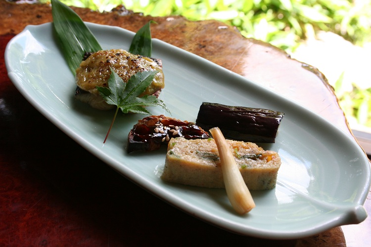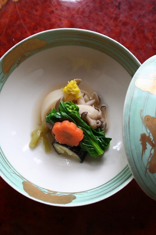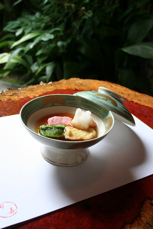 先付 - 前菜 - 造り - 蒸し物 - 煮物 - 焼き物 - 揚げ物 - 食事 - 吸物 - 甘味